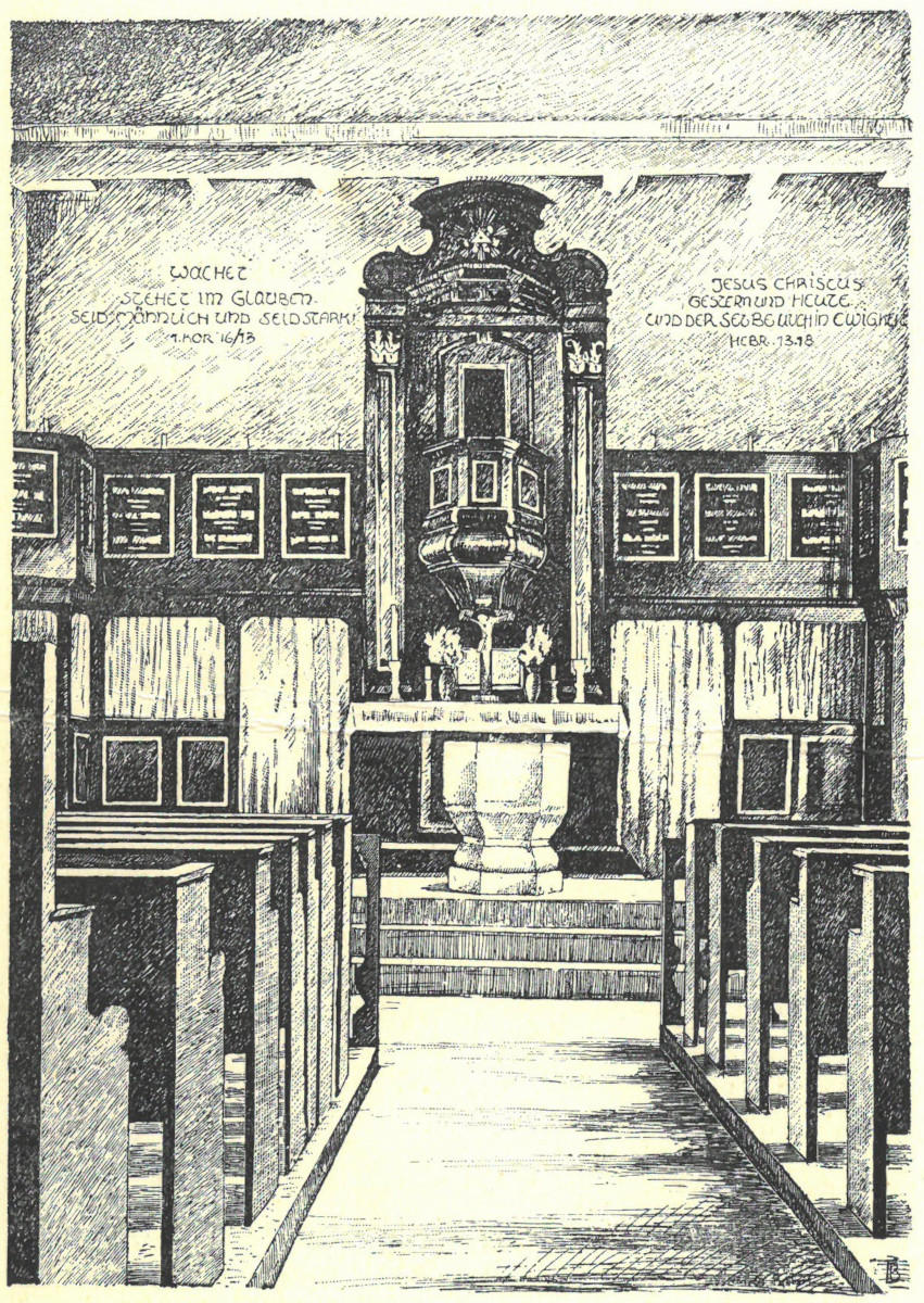 Kirche, Blick zum Altar, um 1953