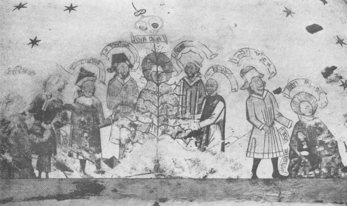 - Diederichs-Gottschalk datiert die Ausmalung des Westjochs auf das frühe 15. Jh., die des Ostjochs auf das Ende des 15. Jh., Diederichs-Gottschalk, S. 29 und S. 36.