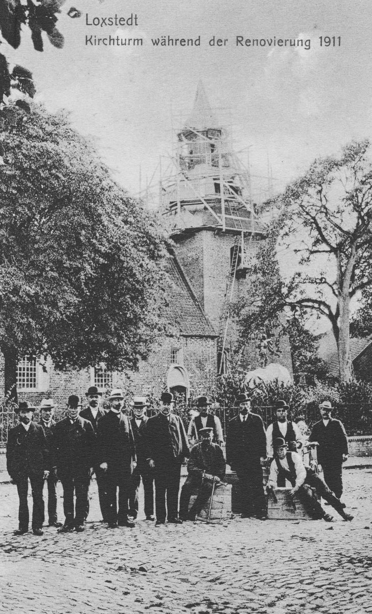 Der Loxstedter P. Michael Reese (amt. 1838–1862) war Abgeordneter in zweiten der Kammer der Ständeversammlung des Kgr. Hannover; zudem war er einer der sieben Wahlmänner aus dem Gericht Beverstedt, die 1848 die Abgeordneten des Kgr. Hannover für die Frankfurter Nationalversammlung wählten.18 Im Jahr 1859 brannten Pfarrhaus sowie Küsterhaus mit Schule ab. Im Jahr 1910 konnte die Gemeinde ihre Kirche renovieren lassen, überwiegend finanziert aus dem Vermächtnis des in die USA ausgewanderten Gemeindeglieds Lüder Friedrich von Ohlsen († 1906).19 Die bei der Renovierung freigelegten figürlichen Malereien aus der Mitte des 15. Jh. blieben „ohne Überarbeitungen und Ergänzungen“, da das preußische Kultusministerium notwendige Mittel dafür nicht bewilligte.20