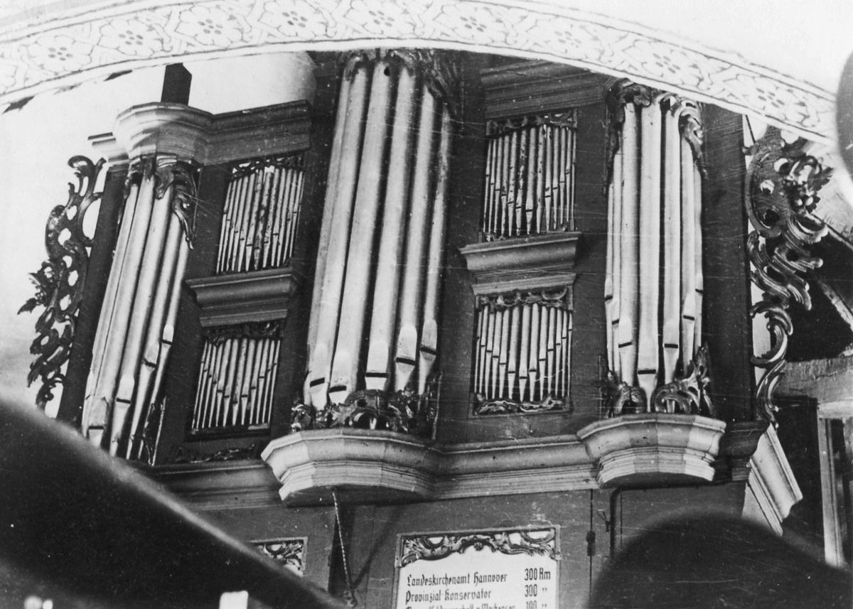 1769/71 Orgelneubau, ausgeführt von Matthias Schreiber (Glückstadt), unter Verwendung von Pfeifenmaterial der Vorgängerorgel, nach Schreibers Tod 1771 Orgelbau 1785/86 fortgesetzt von Johann Georg Wilhelm Wilhelmy (Stade), 1789/90 vollendet von Johann Wolfgang Witzmann (Nesse), 21 II/P, mechanische Traktur, Schleifladen; außerdem zwei Register vakant.50 1852 Reparaturen und Umbauten, Johann Hinrich Röver (Stade). 1939 Instandsetzung und Umbau, Paul Ott (Göttingen), 23 II/P, mechanische Traktur, Schleifladen. 1969 Orgel nur noch teilweise spielbar, ab Herbst 1971 Leihpositiv genutzt. 1972 Interimsorgel angeschafft, erbaut von Schmidt & Thiemann (Hannover), 6 I/P, mechanische Traktur, Schleifladen. 1979–84 Schreiber-Orgel restauriert, Alfred Führer (Wilhelmshaven), 21 II/P, mechanische Traktur, Schleifladen; außerdem zwei Register vakant; Tonhöhe liegt etwa einen Ganzton über normal. 2015 Renovierung. Denkmalorgel.