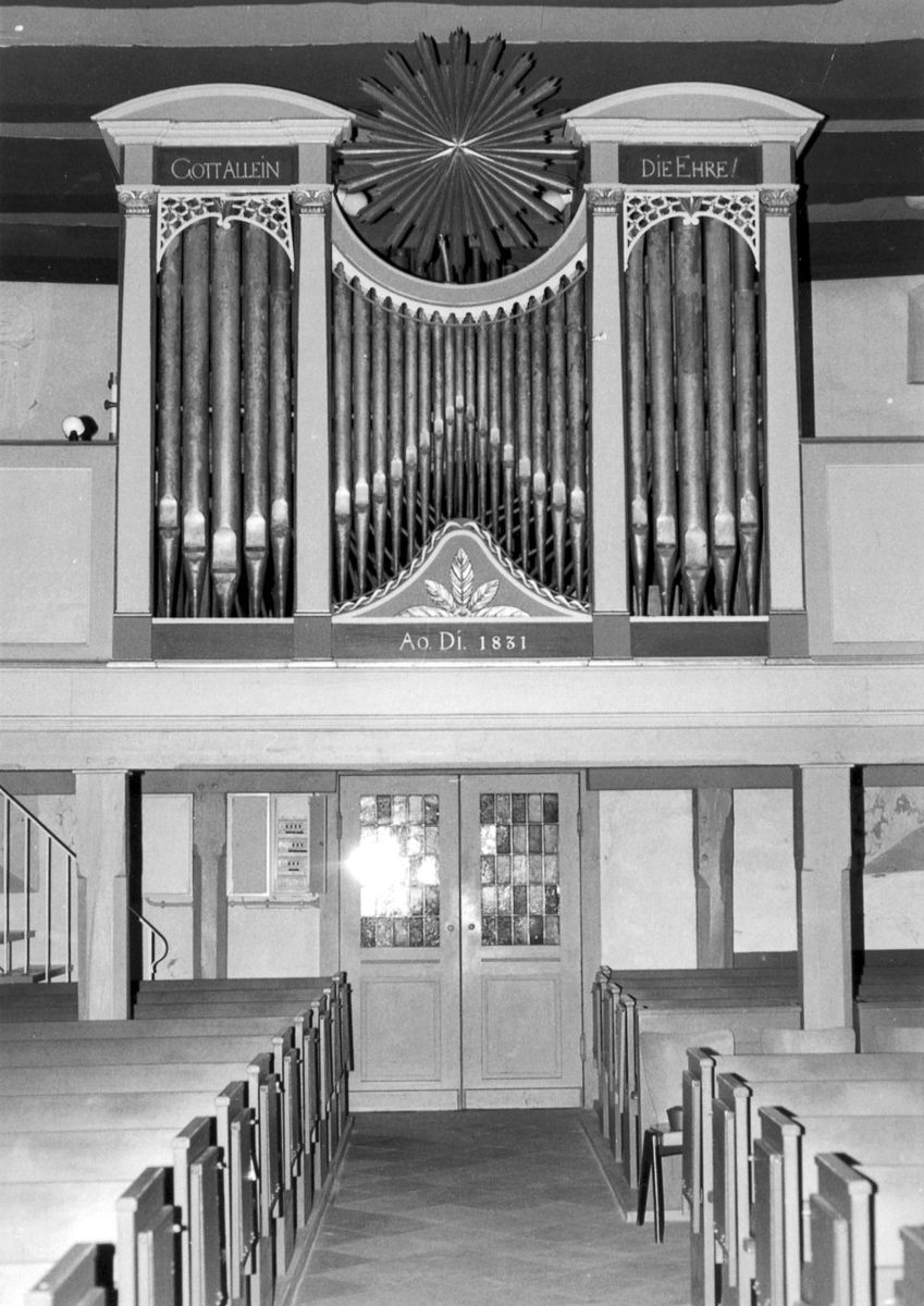 1797 keine Orgel vorhanden.38 1830/31 Orgelneubau, ausgeführt von Johann Georg Wilhelm Wilhelmy (Stade), wohl 13 I/P, mechanische Traktur, Schleifladen, eingebaut in die Brüstung der Westempore, am Prospekt Inschrift: „Zur Ehre Gottes 1831“. 1860 oder 1910 Orgel erweitert um Oberwerk mit Kegellade, Röver (Stade), Zustand 1944: 14 II/P, mechanische Traktur, Schleifladen, Kegelladen.39 1964 Restaurierung, Hermann Hillebrand, Altwarmbüchen, 13 I/P, mechanische Traktur, Schleifladen. 1988 Orgel wegen Innenrenovierung der Kirche abgebaut. 1992–96 Restaurierung, Firma Gebrüder Hillebrand (Altwarmbüchen), 13 I/P, mechanische Traktur, Schleifladen. Denkmalorgel (seit 1955).40