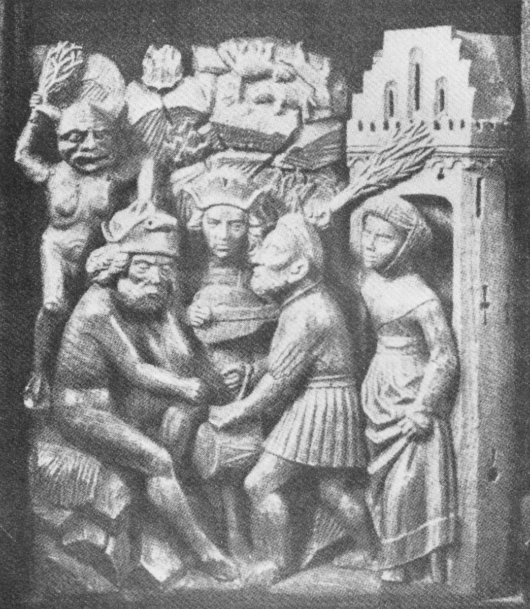 Ehemaliger Altaraufsatz, mittelalterlicher Flügelaltar, Innenseiten der inneren Flügel, in nachreformatorischer Zeit beschriftet