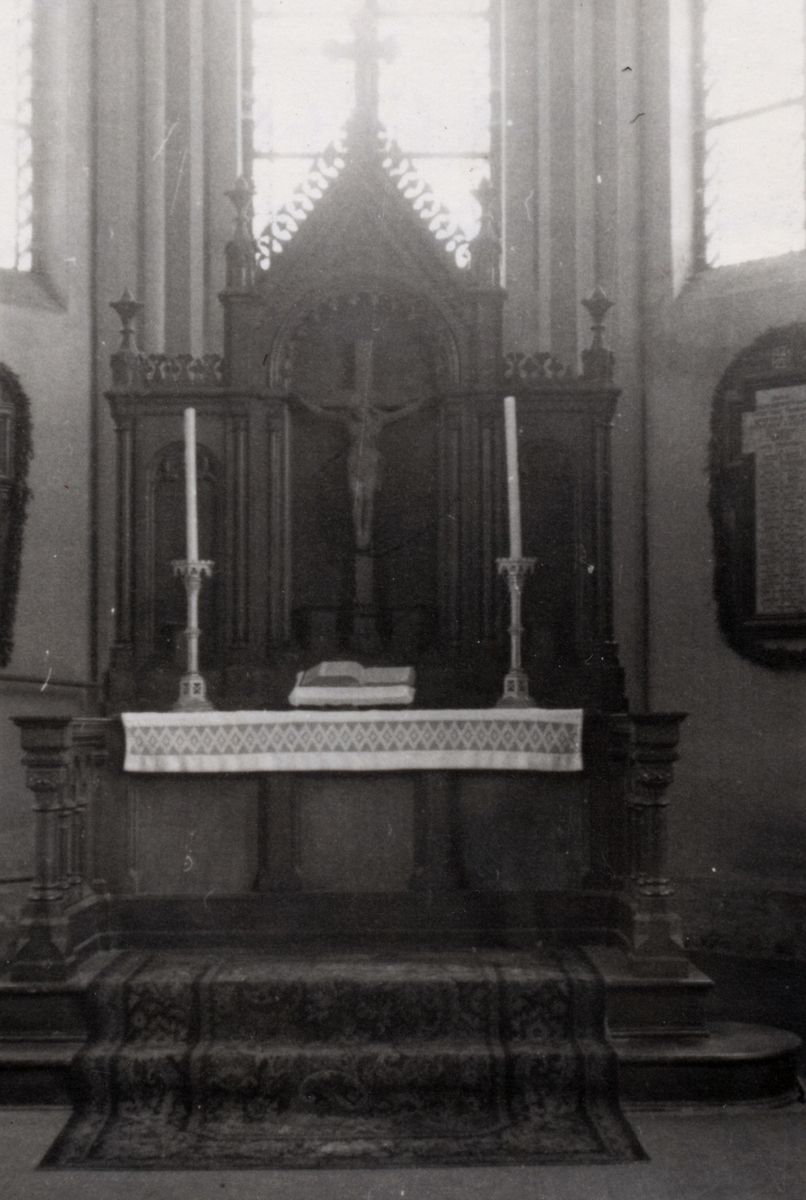 Der 1577 für Uthlede genannte P. Johannes Stoeve war sicher ein luth. Prediger.14 Ein Zeugnis des vollzogenen Konfessionswechsels in Uthlede ist das spätmittelalterliche Flügelretabel, das etwa um 1580 zu einem Schriftaltar umgewandelt wurde: Statt geschnitzter Reliefs und einer gemalten Darstellung der Lazarus-Legende zeigte der Altar nun, in goldener Schrift auf schwarzem Grund und in niederdeutscher Sprache, das Vaterunser, das Glaubensbekenntnis, die Zehn Gebote, den Taufbefehl und die Einsetzungsworte des Abendmahls.15 Im Jahr 1615 ist ein „alter Schulmeister“ erwähnt, dessen Amt nun der Küster Johannes Seudes (Sullster?) übernommen hatte.16 Das Pfarramt hatte bis 1614/15 P. Dietrich Ronner inne, gleichzeitig Stiftsherr an St. Wilhadi und St. Stephani in Bremen; er wurde wegen dauernder Abwesenheit abgesetzt. Den Pfarrdienst in Uthlede hatte vielleicht bereits seit Ende des 16. Jh. P. Balthasar Fischer versehen, der 1614, 1615 und 1623 als Pastor belegt ist und 1589 als künftiger Pastor bezeichnet wurde.17 Erst seit der zweiten Hälfte des 17. Jh., beginnend mit P. Böhlke Heersen (amt. 1662–1668) ist die Reihe der Pastoren in Uthlede lückenlos bekannt.