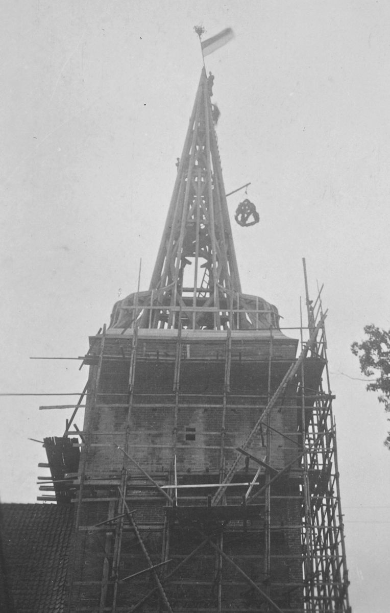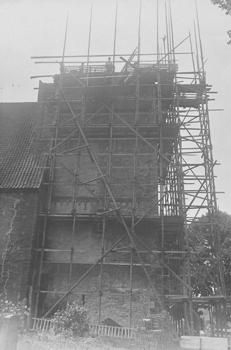 Kirche, Ansicht von Nordwesten, aus dem Fotoalbum „Die Kirchen des Sprengels Stade“, 1948, Geschenk der Geistlichen des Sprengels Stade an LSup. Franz Wiebe bei seinem Wechsel nach Göttingen